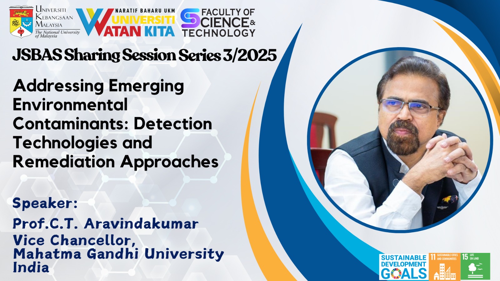 15 July 2025 — The Department of Earth Sciences and Environment (JSBAS), Faculty of Science and Technology, Universiti Kebangsaan Malaysia (UKM), successfully conducted its JSBAS Sharing Session Series 3/2025 today. The seminar, held from 2.00 to 4.00 PM at the Geology Meeting Room, featured an esteemed international guest speaker, Prof. Dr. C.T. Aravindakumar, Vice-Chancellor of Mahatma Gandhi University, India.