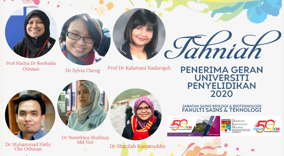 Jabatan Sains Biologi dan Bioteknologi ingin mengucapkan tahniah kepada penerima-penerima Geran Universiti Penyelidikan 2020. Layari maklumat penyelidik dan kluster melalui link berikut: Expertise directory Research…