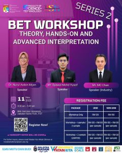 Following the success of the first BET and Surface Area Workshop Series in 2024, the Department of Chemical Sciences once again organized the Series II Workshop, successfully held on 12 November 2025. The workshop was led by Dr. Nurul Asikin Mijan, who also served as one of the main speakers, together with Mr. Syawal and Mr. Chan from Micromeritics.