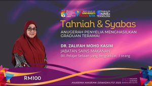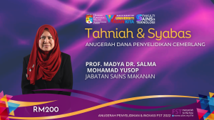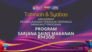 Juga, tahniah dan syabas kepada Program Sarjana Sains Makanan di atas penerimaan Anugerah Pembelajaran Teradun Tertinggi Mengikut Program.