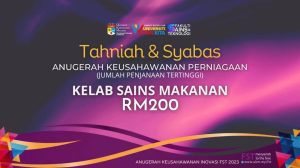 Tahniah juga diucapkan kepada Kelab Sains Makanan (KESAMAP) atas kejayaan memperolehi Anugerah Keusahawanan Perniagaan (Jumlah Penjanaan Tertinggi).