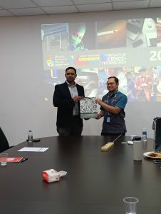 Sesi perkenalan dan perbincangan ini telah dipengerusikan oleh Timbalan Dekan Hal Ehwal Jaringan Industri dan Masyarakat (HEJIM), Fakulti Sains dan Teknologi, Prof. Dr. Rizafizah Othaman, dan turut disertai oleh Dekan Fakulti Sains dan Teknologi, Prof. ChM. Dr. Ishak Ahmad.