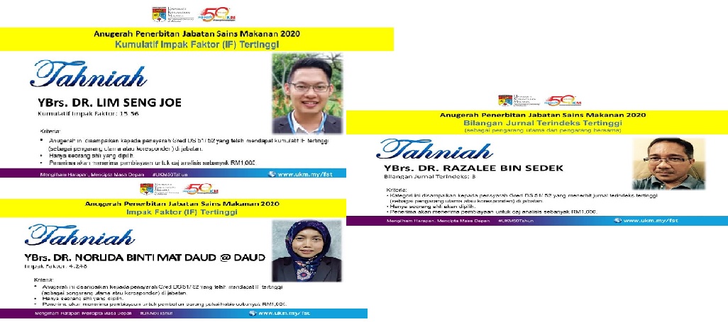 Tahniah kepada para penerima Anugerah Penerbitan Jabatan Sains Makanan 2020!