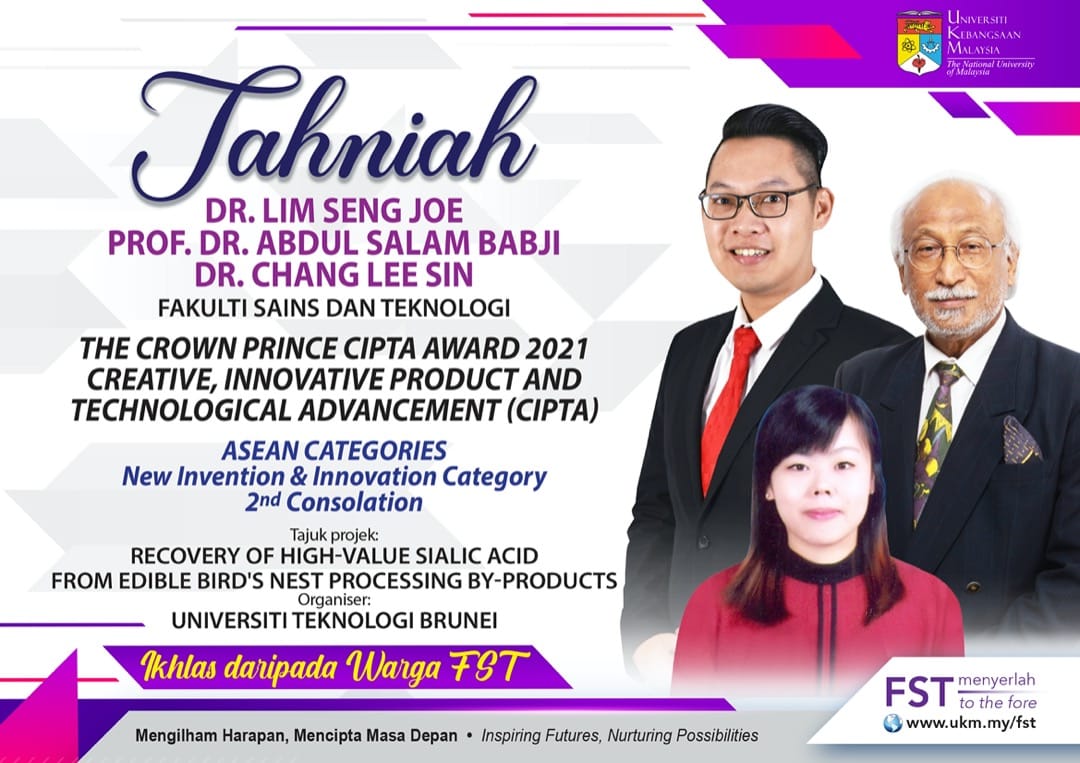 Congratulations Dr Lim Seng Joe , Prof Dr Abdul Salam Babji and Dr Chang Lee Sin. The Crown Prince CIPTA Award 2021 CREATIVE, INNOVATIVE PRODUCT …