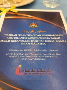 Berikut adalah gambar-gambar semasa menerima watikah perlantikan sebagai JK Majlis Kebangsaan Bagi Hal Ehwal Agama Islam (MKI) daripada Sultan Selangor