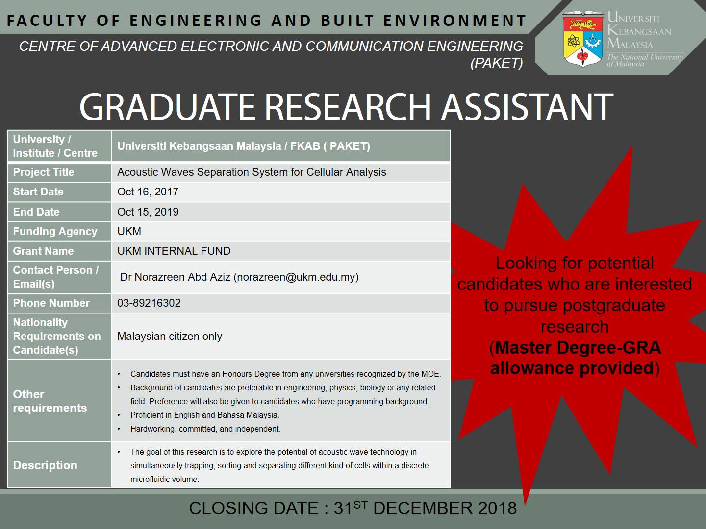 Find out more: GRA Position: Dr. Norazreen Abd Aziz