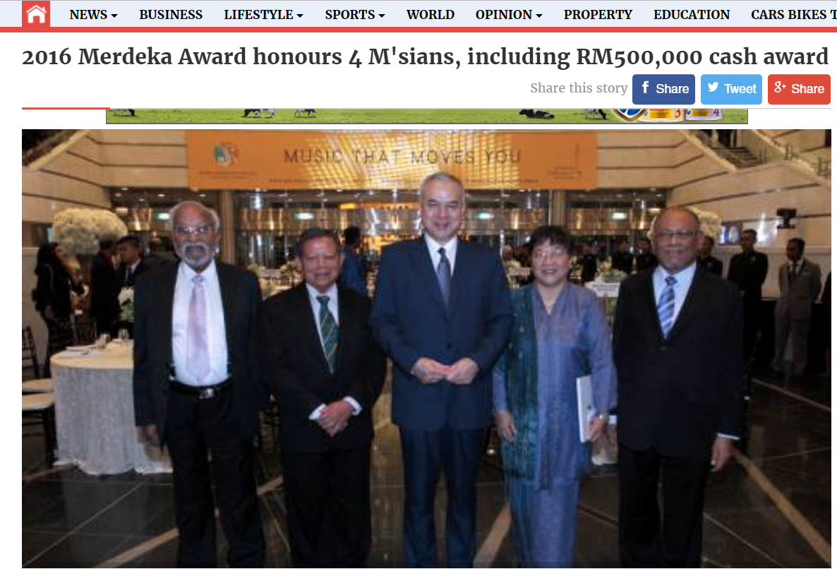 2016 Merdeka Award honours 4 M’sians, including RM500,000 cash award |