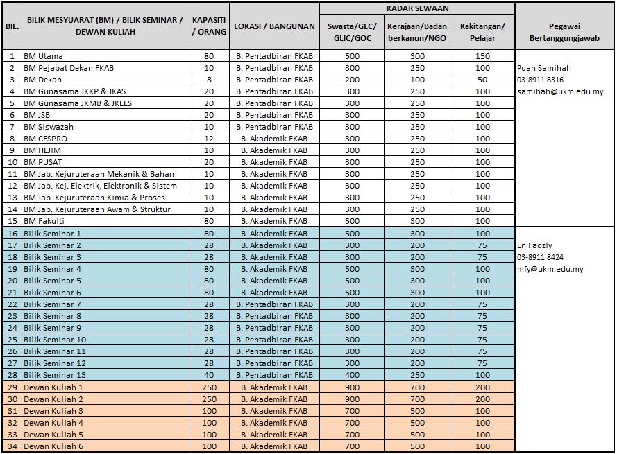 Kadar Sewaan Ruang Di Fakulti Kejuruteraan Dan Alam Bina