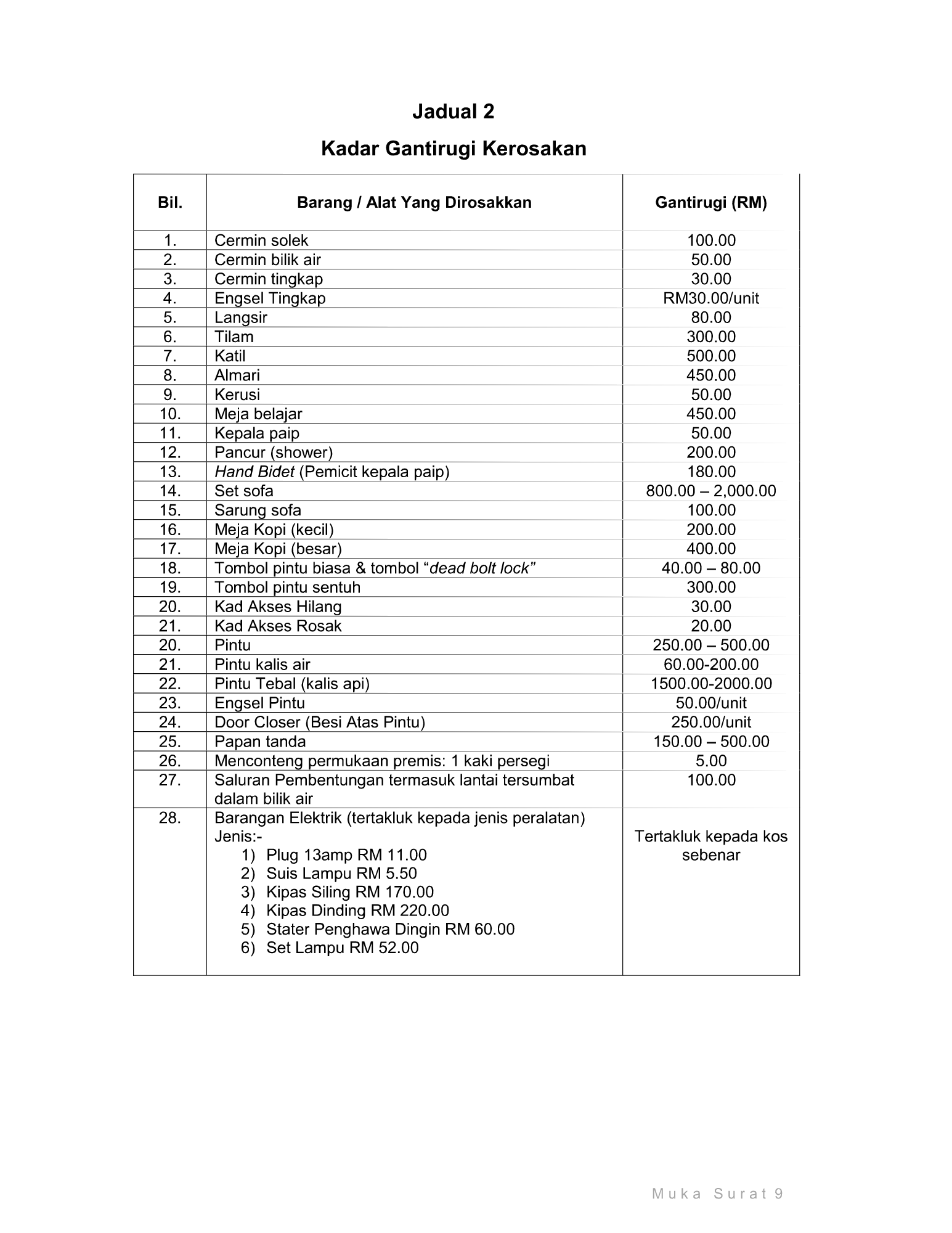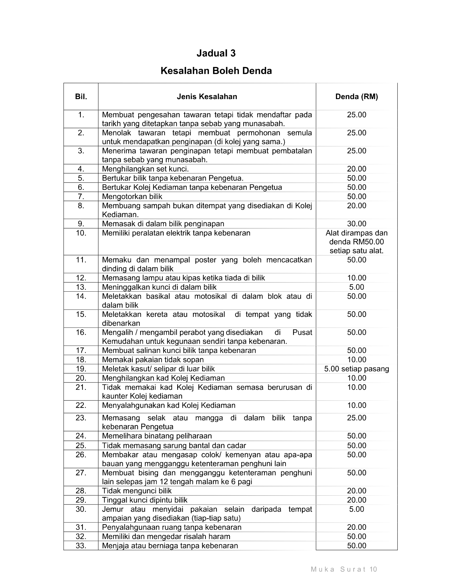 Senarai Denda