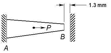 Consider an aluminium bar 2014-T6 AB as shown in Figure 1. An axial load P = 100 kN is applied in the middle. The temperature is then rased to 150 K. The length of the bar is 300 mm. The diameter at A is 20 mm and diameter B is 10 mm.