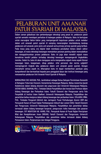 Dalam zaman globalisasi dan perkembangan teknologi yang pesat ini, pelaburan patuh syariah semakin mendapat perhatian di kalangan pelabur di Malaysia. Buku ini bertujuan untuk merungkai faktor-faktor yang mempengaruhi keputusan pelabur untuk melabur dalam unit amanah patuh syariah di samping menerangkan latar belakang lanskap pelaburan unit amanah, jenis-jenis unit amanah serta prinsip-prinsip syariah yang terlibat. Pada masa yang sama, era digital telah membawa perubahan ketara dalam sektor kewangan, di mana teknologi kewangan memainkan peranan penting dalam memudahkan dan mengoptimumkan proses pelaburan. Buku ini juga akan meneliti sejauh mana kemahiran kendiri pelabur terhadap teknologi kewangan mempengaruhi tingkahlaku mereka. Selain itu, buku ini akan mengupas serta menganalisa sejauh mana aspek literasi kewangan Islam, keagamaan, sikap pelabur, sifat personal, dan norma subjektif mempengaruhi tingkah laku pelaburan dalam unit amanah patuh syariah. Dengan memahami semua aspek ini, diharapkan buku ini dapat memberikan panduan yang komprehensif dan bermanfaat kepada para penggubal dasar dan institusi kewangan yang menawarkan pelaburan Unit Amanah Patuh Syariah di Malaysia.