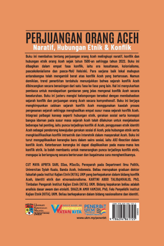 Buku ini membahas tentang perjuangan orang Aceh melingkupi naratif, konflik dan hubungan etnik orang Aceh sejak tahun 1500-an sehingga tahun 2022. Buku ini dibagikan dalam empat fasa konflik, iaitu era kesultanan, kolonialisme, pascakolonialisme dan pasca-MoU Helsinki. Para sarjana baik lokal mahupun antarabangsa telah mengambil berat atas konflik Aceh yang berterusan. Namun demikian, trend penerbitan terdahulu menunjukkan bahwa sejarah konflik Aceh dibincangkan secara berasingan dari satu fasa ke fasa yang lain. Hal ini menyukarkan pembaca untuk mendapatkan gambaran yang jelas mengenai konflik Aceh secara keseluruhan. Buku ini justeru mengisi kelompongan tersebut dengan membahaskan sejarah konflik dan perjuangan orang Aceh secara komprehensif. Buku ini berjaya menghimpunkan cebisan sejarah konflik Aceh menggunakan kaedah proses pengesanan sejarah sehingga menghasilkan empat susur masa sejarah konflik Aceh. Integrasi pelbagai konsep seperti hubungan etnik, gerakan sosial serta konsepsi bangsa idaman pada susur masa sejarah Aceh telah dilakukan untuk menjelaskan beberapa hal penting, iaitu punca terjadinya konflik di Aceh, penggunaan etnik identiti Aceh sebagai pendorong kewujudan gerakan sosial di Aceh, pola hubungan etnik serta mengklasifikasikan konflik intra dan inter-etnik dalam masyarakat Aceh. Buku ini turut mengaplikasikan kerangka baru dalam sains sosial, iaitu ASC-Reaction dalam konflik Aceh. Keterbaruan kerangka ini dapat diaplikasikan pada mana-mana kes konflik etnik. Ia boleh membantu untuk menerangkan punca terjadinya konflik etnik, mengapa ia berlangsung secara berterusan dan bagaimana cara menghentikannya.
