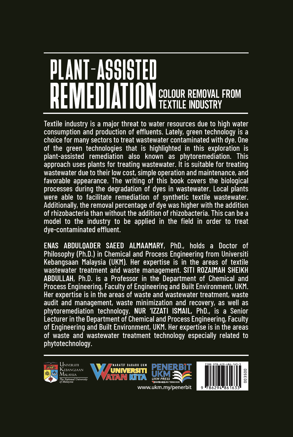 The textile industry is a major threat to water resources due to high water consumption and production of effluents. Lately, green technology is a choice for many sectors to treat wastewater contaminated with dye. One of the green technologies that is highlighted in this exploration is plant-assisted remediation also known as phytoremediation. This approach uses plants for treating wastewater. It is suitable for treating wastewater due to their low cost, simple operation and maintenance, and favorable appearance. The writing of this book covers the biological processes during the degradation of dyes in wastewater. Local plants were able to facilitate remediation of synthetic textile wastewater. Additionally, the removal percentage of dye was higher with the addition of rhizobacteria than without the addition of rhizobacteria. This can be a model to the industry to be applied in the field in order to treat dye-contaminated effluent.