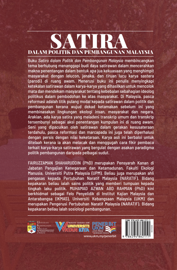 This book discusses themes related to responding to the wit of satirists in illuminating the meaning of resistance against any form of power that oppresses society through humor, jokes, and humorous imitations of literary works (parody) in the public sphere. This book uncovers the consistency of satirists in the works they produce to awaken society to the foolishness of some politicians’ ideologies in their deception of the public. In Malaysia, the post-reform era was a break-even point for satirists in politics and development due to the preceding decade of greed that devastated the ecological environment of individuals, society, and the nation. Furthermore, there are satirical works that serve both the public transcript and the hidden transcript as acts of resistance by this group in the public sphere. The art sparked by satirists in previous literary movements, the post-reform era, and the present day has also been meticulously refined with the value of visibility. This original work is worth examining because it traces and provokes readers’ way of thinking regarding the works of satirists who grapple with the pressure of the political development paradigm from various angles.