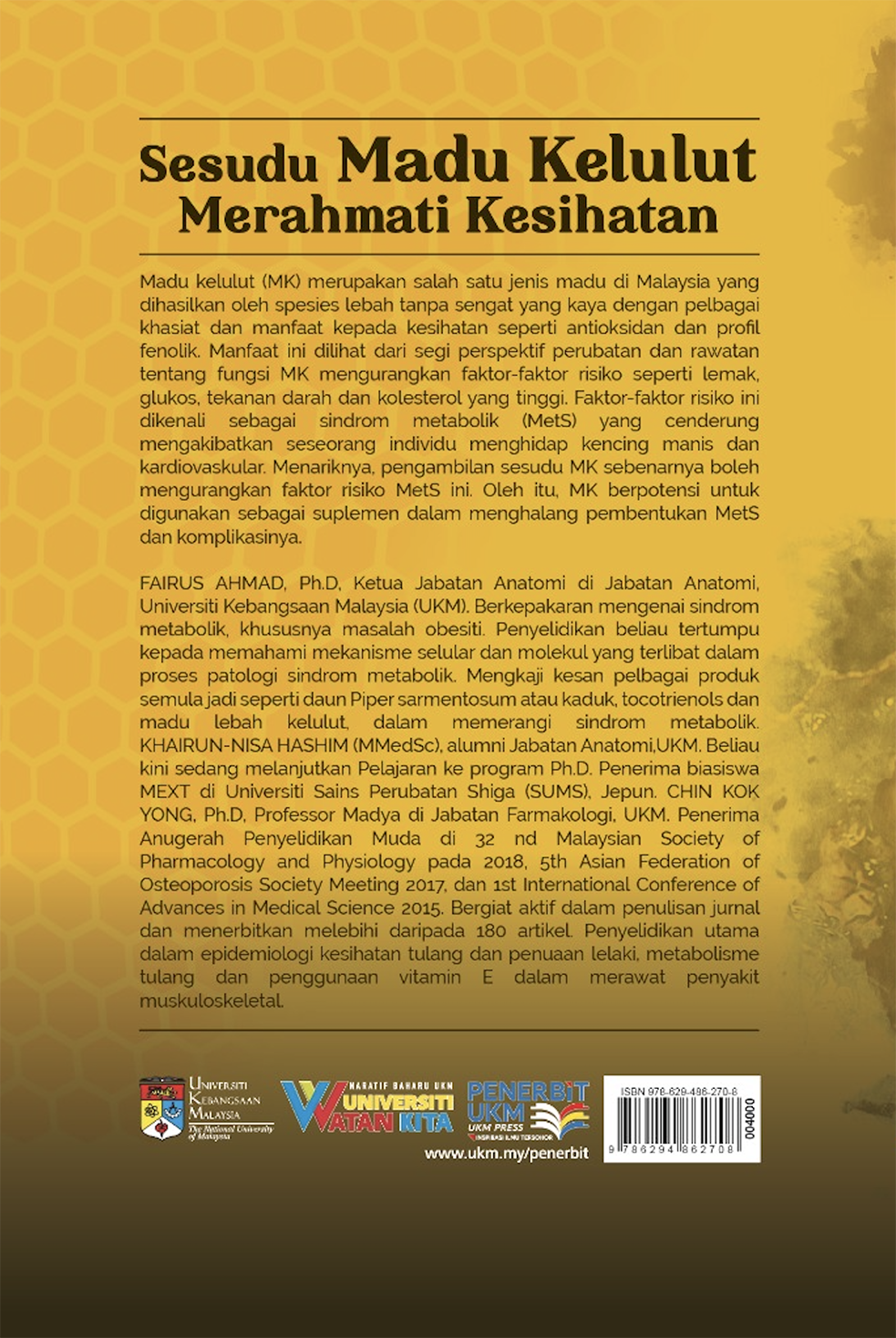 Kelulut honey (SBH) is one type of honey in Malaysia that is produced by stingless bee species and is rich in various nutrients and benefits for health, such as antioxidants and phenolic profiles. These benefits are viewed from the perspective of medicine and treatment, particularly in terms of SBH’s function in reducing risk factors such as fat, glucose, high blood pressure and cholesterol. These risk factors are known as metabolic syndrome (MetS), which tends to cause an individual to develop diabetes and cardiovascular diseases. Interestingly, consuming a spoonful of SBH can actually reduce these MetS risk factors. Therefore, SBH has the potential to be used as a supplement in preventing the formation of MetS and its complications.