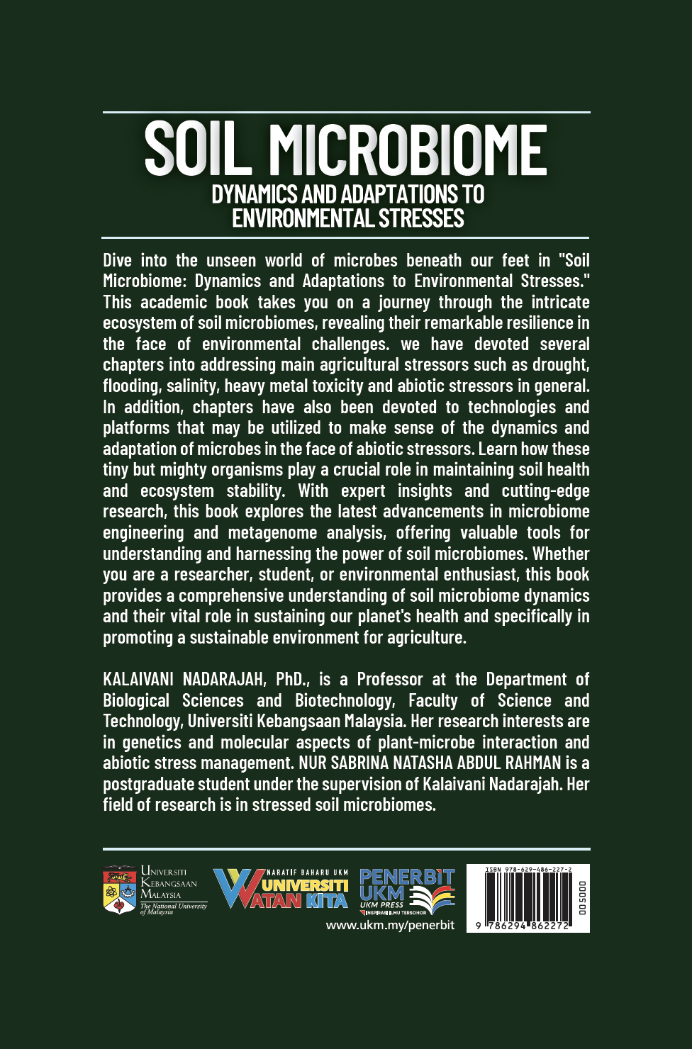 Dive into the unseen world of microbes beneath our feet in “Soil Microbiome: Dynamics and Adaptations to Environmental Stresses.” This book takes you on a journey through the intricate ecosystem of soil microbiomes, revealing their remarkable resilience in the face of environmental challenges. There are several chapters addressing main agricultural stressors such as drought, flooding, salinity, heavy metal toxicity and abiotic stressors in general. In addition, chapters have also been devoted to technologies and platforms that may be utilized to make sense of the dynamics and adaptation of microbes in the face of abiotic stressors. Learn how these tiny but mighty organisms play a crucial role in maintaining soil health and ecosystem stability. With expert insights and cutting-edge research, “soil microbiome” explores the latest advancements in microbiome engineering and metagenome analysis, offering valuable tools for understanding and harnessing the power of soil microbiomes. This book provides a comprehensive understanding of soil microbiome dynamics and their vital role in sustaining our planet’s health and specifically in promoting a sustainable environment for agriculture.