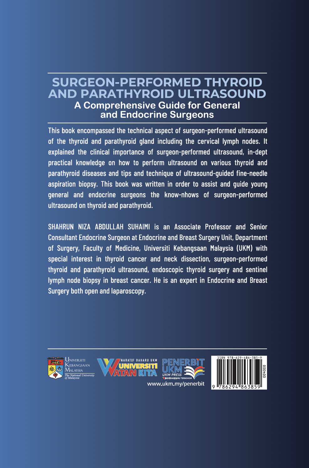 This book encompassed the technical aspect of surgeon-performed ultrasound of the thyroid and parathyroid gland including the cervical lymph nodes. It explained the clinical importance of surgeon-performed ultrasound, in-depth practical knowledge on how to perform ultrasound on various thyroid and parathyroid diseases and tips and technique of ultrasound-guided fine-needle aspiration biopsy. This book was written in order to assist and guide young general and endocrine surgeons the know-hows of surgeon-performed ultrasound on thyroid and parathyroid.