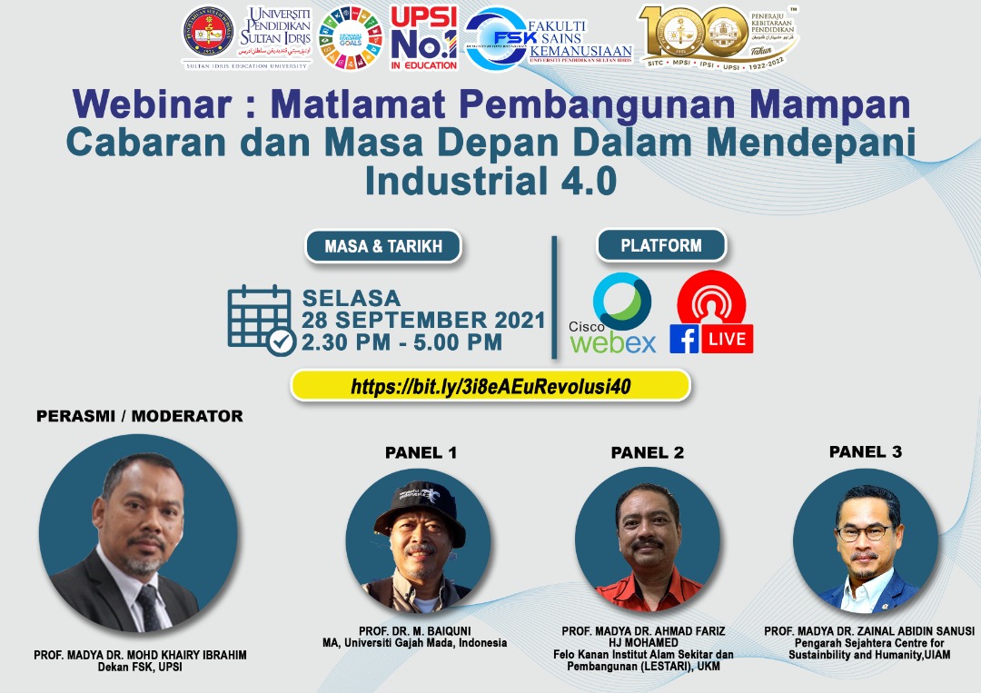WEBINAR : MATLAMAT PEMBANGUNAN MAMPAN | CABARAN DAN MASA DEPAN DALAM MENDEPANI INDUSTRIAL 4.0 | 28 SEPTEMBER 2021