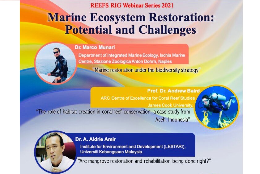 Research and Education on Environment for Future Sustainability (REEFS) RIG Webinar Series 2021 Tajuk : Marine Ecosystem Restoration Potential and Challenges 2021 Tarikh : 20 …
