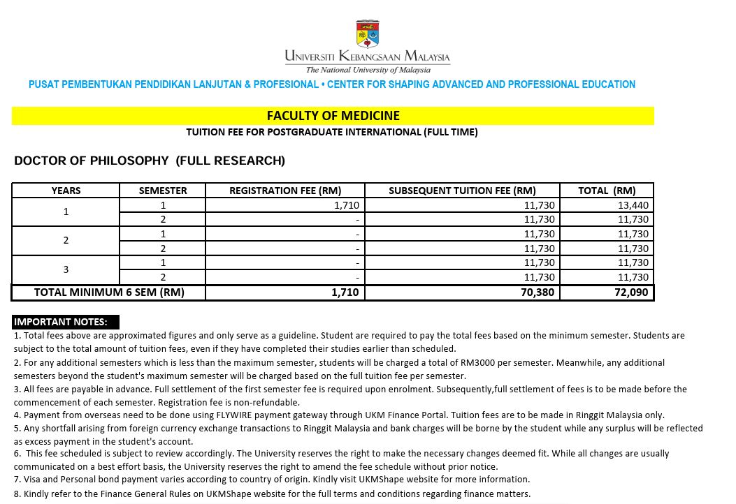 Calon akan mengikuti pengajian Doktor Falsafah berdasarkan makluman berikut: