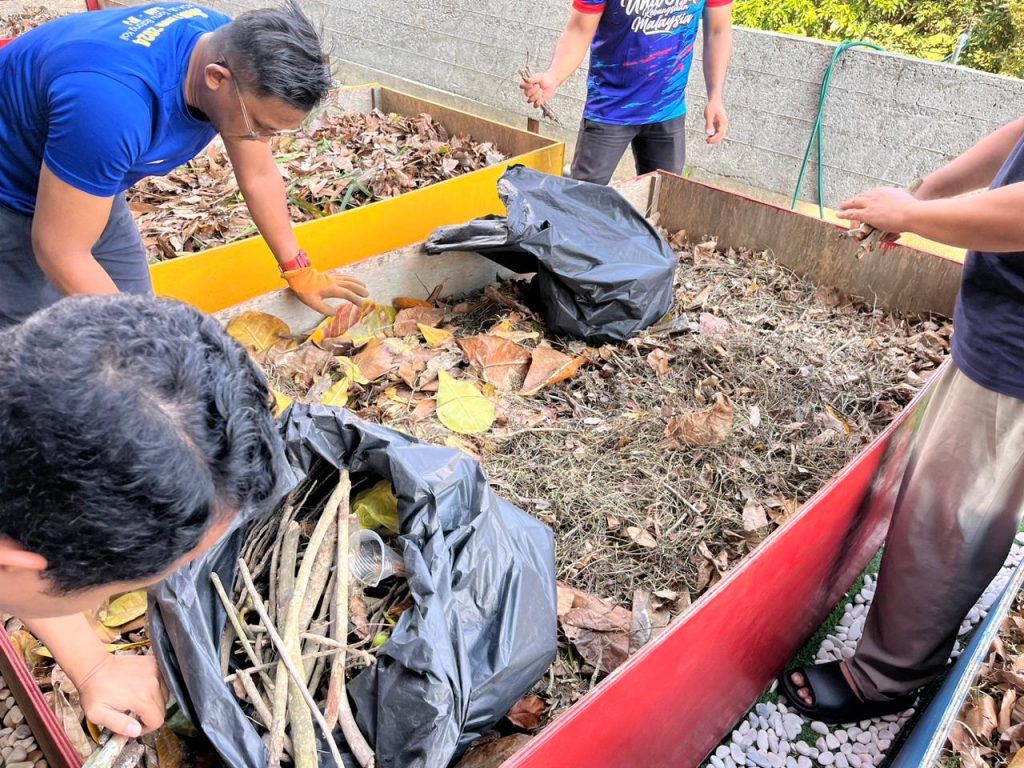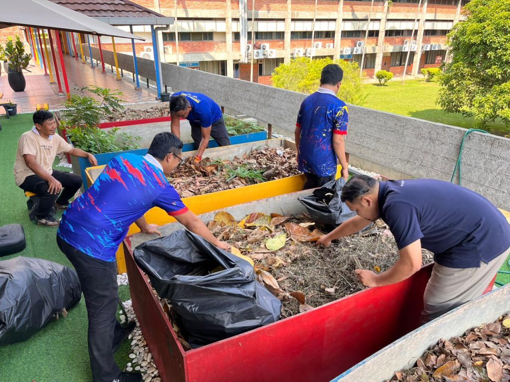 The process of mulching to produce organic fertilizer before applying the topsoil in Taman Ilmu Pusat Strategi UKM on May 13, 2024