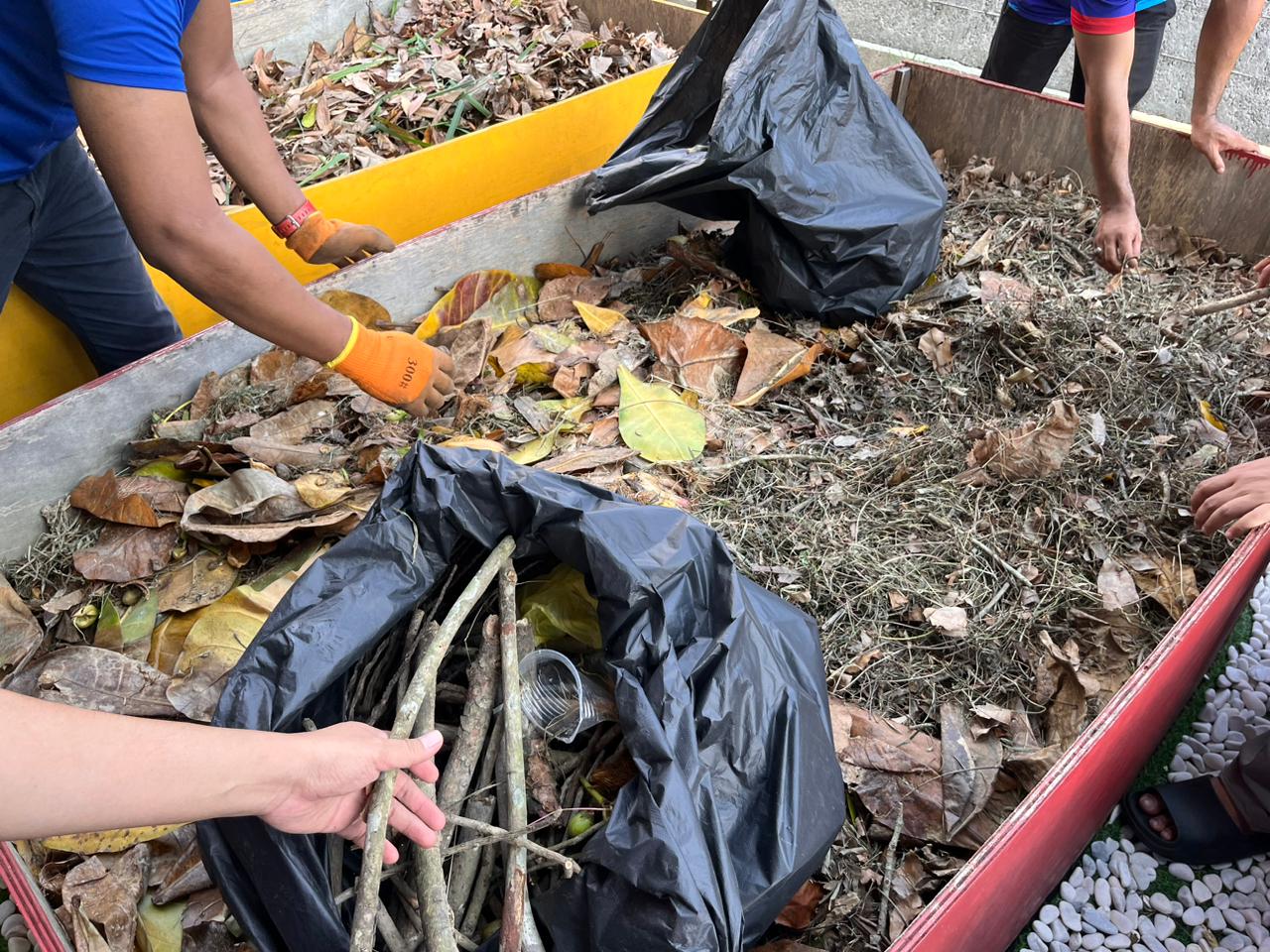 The process of mulching to produce organic fertilizer before applying the topsoil in Taman Ilmu Pusat Strategi UKM on May 13, 2024