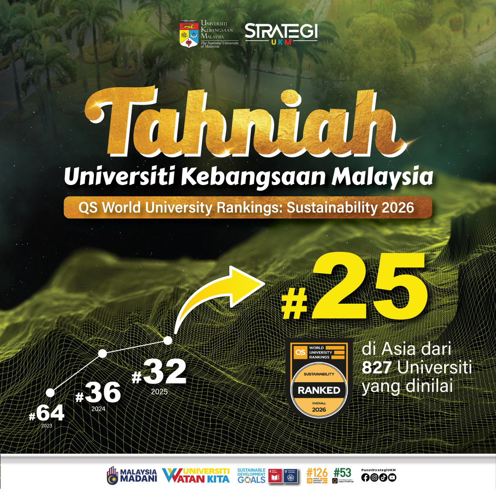 Universiti Kebangsaan Malaysia (UKM) has once again demonstrated its strong commitment to sustainability with an outstanding performance in the QS World University Rankings: Sustainability 2026. UKM is ranked No. 1 in Malaysia for Environmental Impact, No. 2 for Governance, and No. 3 for Social Impact among 33 evaluated universities in the country.