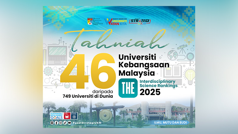 In the first-ever THE Interdisciplinary Science Ranking announced today, UKM has successfully secured the 46th position out of 749 universities assessed from 92 countries.