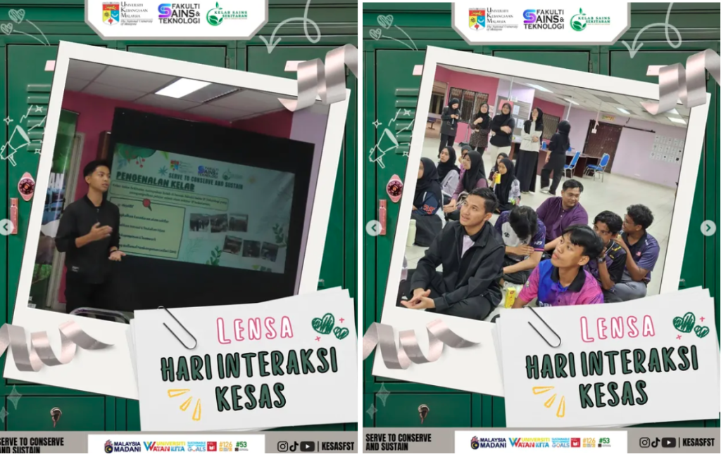 On 9th October 2025, the Environmental Science Club successfully organized the KESAS Interaction Day with first-year students of the 2025/2026 session. The event provided an engaging platform for new students to get to know their seniors, learn more about the club’s activities, and foster a sense of community within the department. Through ice-breaking sessions, informative presentations, and interactive activities, participants were encouraged to share ideas, build connections, and develop an early appreciation for environmental awareness and sustainability initiatives. The programme also aimed to motivate first-year students to actively participate in club activities and contribute to environmental efforts on campus.