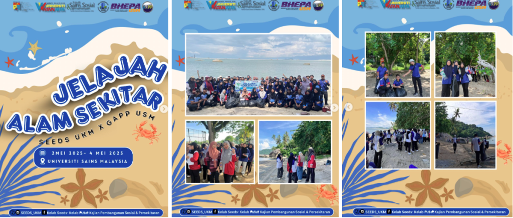 On 2-4 May 2025, The SEEDS Environmental Exploration Programme, organized in collaboration with GAPP, was successfully held at Universiti Sains Malaysia, located in George Town, Penang, Malaysia. This collaborative initiative brought together students from SEEDS of Universiti Kebangsaan Malaysia (UKM) and GAPP of Universiti Sains Malaysia (USM) to strengthen awareness and engagement in environmental sustainability.