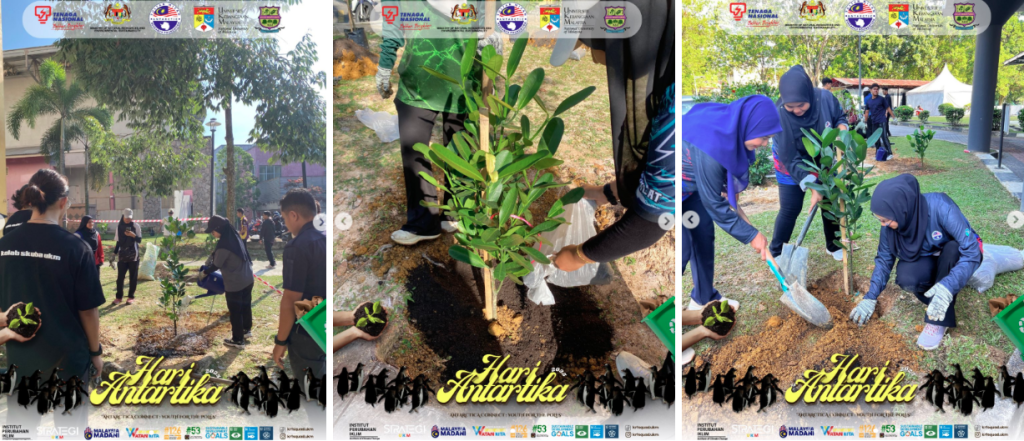 On 1 December 2025, the Rakan Taman Club participated in a tree-planting program in conjunction with Antarctica Day, organized by the UKM Institute of Climate Change (IPI). This collaborative initiative served as a symbolic and practical response to the global climate crisis. By planting trees, the Rakan Taman Club and the UKM Institute of Climate Change aimed to highlight the critical link between local ecosystem health and the preservation of the Antarctic ice sheets. Participants were educated on how urban reforestation helps sequester carbon dioxide, effectively acting as a “green lung” to mitigate the rising temperatures that threaten polar regions.