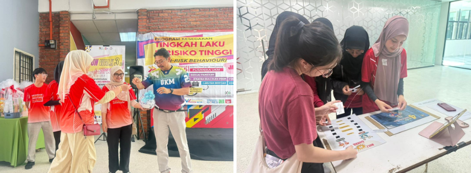 On 20 December 2025, The University Health Centre successfully organised The UKM High-Risk Behaviour Awareness Program 2025 at Pusanika, collaboration with several agencies including the Hulu Langat District Health Office (PKD Hulu Langat), Majlis AIDS Malaysia, Insaf Murni, the National Anti-Drug Agency (AADK), Royal Malaysia Police, the National Population and Family Development Board (LPPKN), and the Malaysian Red Crescent Society (UKM Branch),. The programme aimed to provide a clear understanding of high-risk behaviours such as smoking, vaping, drug abuse, unsafe sexual practices (HIV/AIDS) and bullying to prevent the spread of unhealthy behaviours within the campus community and to cultivate morally grounded and resilient university citizens. Students and staff received training through an explorace activity involving 10 checkpoints, comprising five HIV-related checkpoints, two on smoking/vaping, two on drugs, and one on bullying.