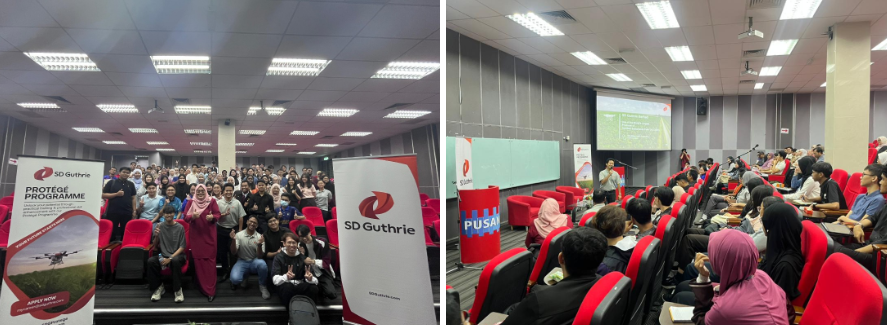 On 5 November 2025, the Career Development Centre (UKM-Career), in collaboration with SD Guthrie, organized the Campus Engagement & Protégé Speed Interview 2025 program. A total of 80 participants attended the career talk delivered by Mr. Amir Hafiz Halim, Talent Acquisition at SD Guthrie International, who shared insights on the company’s background and career development opportunities. The program continued with the Protégé Speed Interview, involving 100 candidates who were interviewed by Mr. Shaun Ram, Group HR (CoE) – Talent Acquisition & Employer Branding, SD Guthrie Berhad. This program not only provided students with exposure to industry requirements but also offered candidates the opportunity to showcase their potential in a real professional environment.