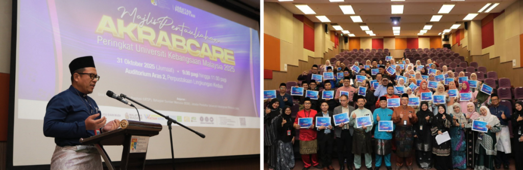 On 31 October 2025 Six UKM staff members were commissioned as AKRAB Care Members during the Universiti Kebangsaan Malaysia Level AKRAB Care Commissioning Ceremony 2025, held at the Second Peripheral Library Auditorium, UKM. The commissioning of these AKRAB Care Members underscores UKM’s commitment to providing a robust, peer-led support network, ensuring that both staff and students have immediate access to empathetic mental health assistance and psychological first aid within the university community.