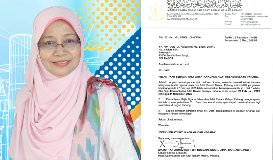 Above: Appointment letter for Prof. Dr. Rosilah as Head of the Muslimat Committee, Al-Hasanah Mosque