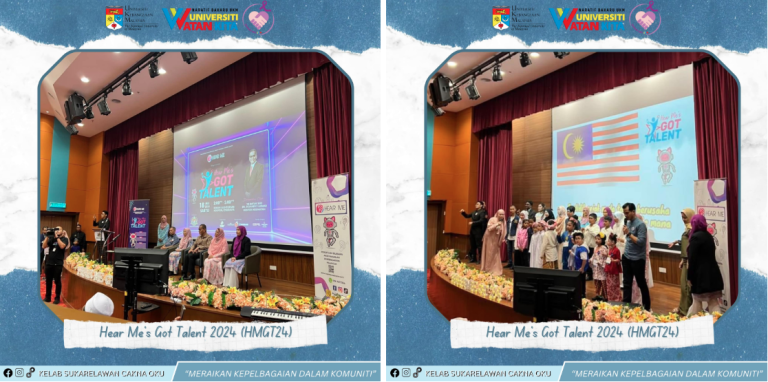 On 18 May 2024, the UKM Cakna OKU Club, together with students from the Faculty of Health Sciences specializing in Speech Therapy and Audiology, as well as the OKU Awareness Volunteer Club, participated as volunteers in the Hear Me’s Got Talent 2024 (HMGT24) program organized by Hear Me Malaysia. This collaborative event aimed to showcase the talents of individuals with hearing impairments while promoting inclusivity and community support. Through various stage performances, participants were given the opportunity to express their creativity and build confidence, while volunteers gained valuable experience in communication, empathy, and service to the special needs community. The strong cooperation between UKM students, Hear Me Malaysia, and parents contributed to the program’s success and strengthened awareness of the abilities and rights of individuals with disabilities. This initiative created a positive social impact by fostering inclusivity, promoting equality, and empowering persons with hearing impairments — directly supporting SDG 10: Reduced Inequalities.