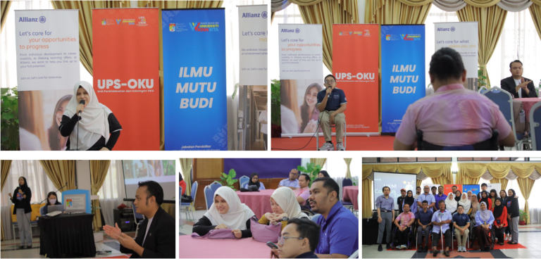 12 June 2024, the Career Talk “Enhancing Capabilities with Allianz Malaysia” program was organized by UPS-OKU in collaboration with the Students with Disabilities Secretariat (SMAKU). The target group for this program was final-year students with a total of 20 individuals (students with disabilities) participating in this program.. The main objective of the program is to provide exposure to career pathways for students with disabilities and to open employment opportunities for students with disabilities who are about to graduate.The program received a positive response from the UKM disabled community. Program activities included a career forum for students with disabilities at Allianz Bank and a sharing session by staff with disabilities from Allianz Bank.