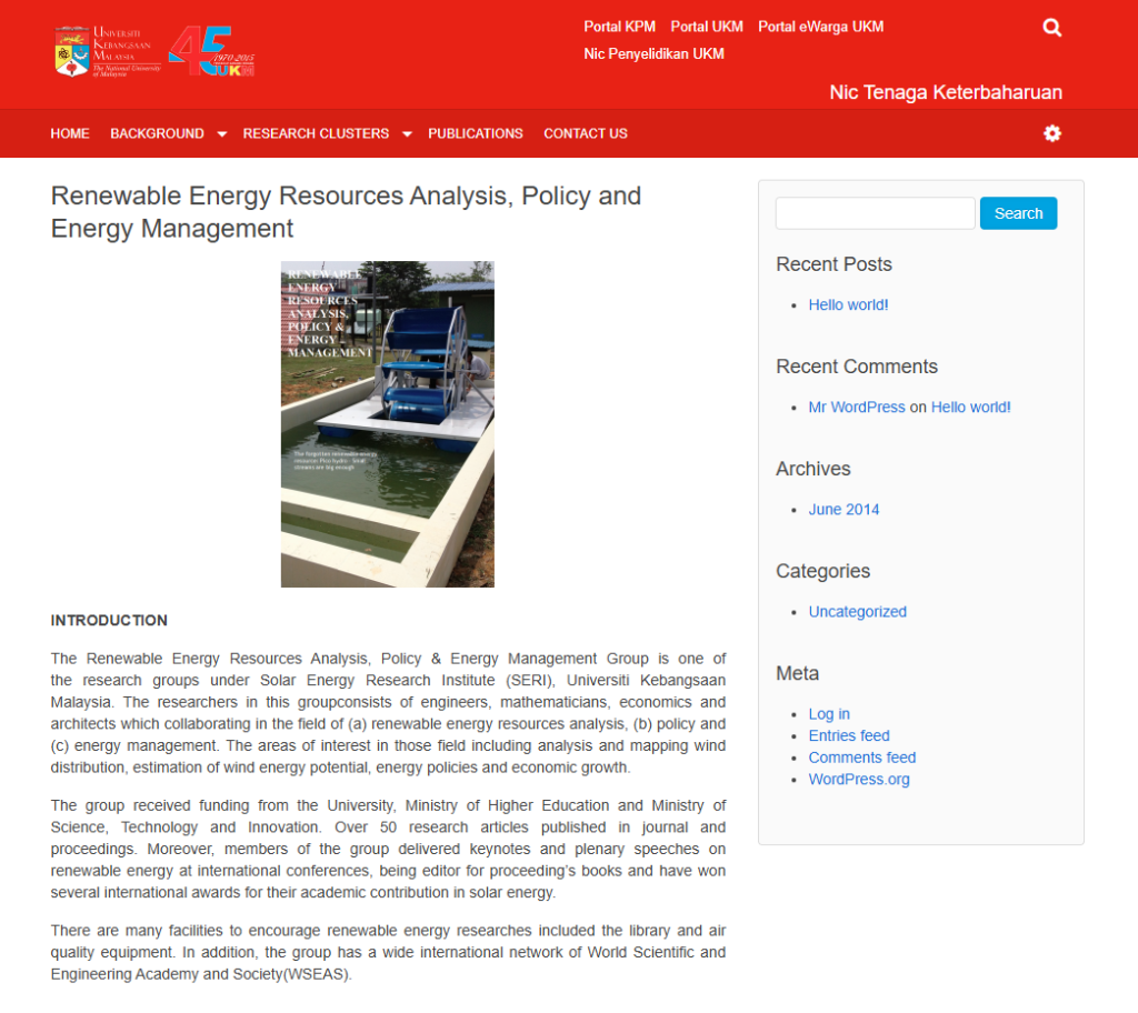 The UKM Renewable Energy Resources Analysis, Policy, and Energy Management group focuses on advancing solar energy technology and formulating policies for renewable energy and energy efficiency. The group collaborates with government bodies and industries to support Malaysia’s energy transition. Their research includes renewable energy resource assessment, energy management strategies, and policy analysis to foster a low-carbon economy. This initiative is crucial for promoting sustainable energy practices and contributing to the national energy goals.