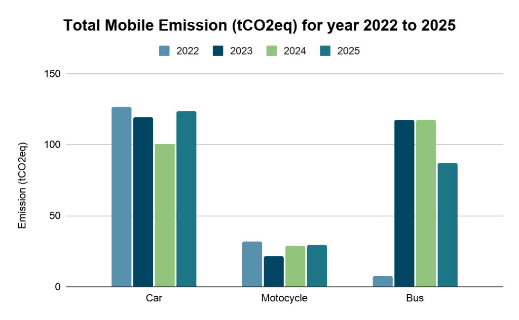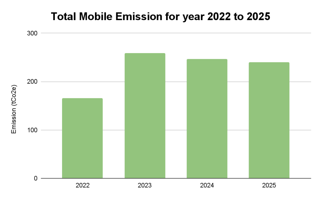 Table 2: Summary of the total mobile emission (tCO2eq) for year 2022 to 2025
