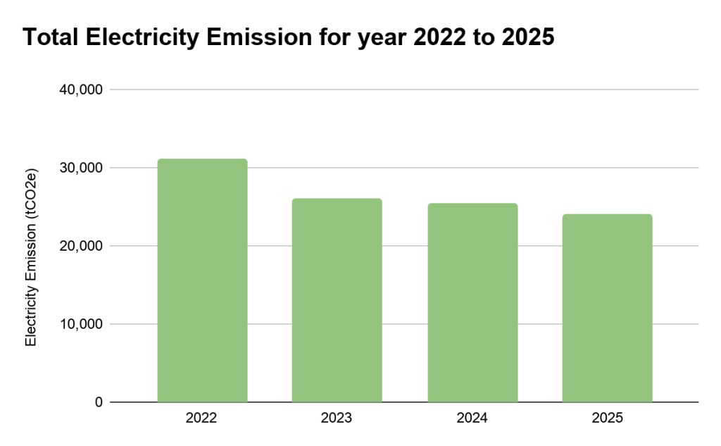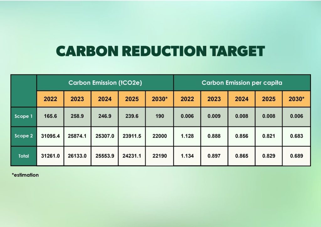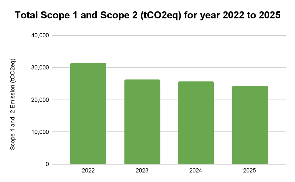 Table 5: Total carbon emission Scope 1 and Scope 2 (tCO2eq) for year 2022 to 2025| Year | (Baseline)2022 | 2023 | 2024 | 2025 |