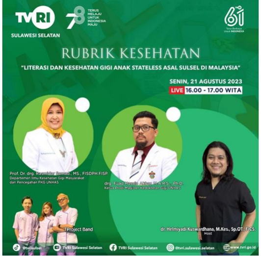 The session was led by prominent figures such as Prof. Dr drg. Rasmidar Samad from UNHAS, who discussed the challenges and solutions related to dental health and literacy among stateless children. The use of mass media allowed the dissemination of crucial health information to a broader audience, raising awareness and educating the public on the importance of dental health for vulnerable groups. This international collaboration exemplifies how media can be leveraged to promote public health initiatives on a global scale, reinforcing the commitment to SDG 3.