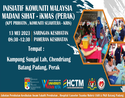 The Malaysia Madani Healthy Community Initiative, also known as Inisiatif Komuniti Malaysia Madani Sihat (iKMAS), was spearheaded by Public Health Physicians from the Department of Public Health Medicine, Faculty of Medicine UKM and the UKM Specialist Centre (HCTM). This initiative focuses on empowering the B40 community in the Batang Padang District, Perak, through health education and disease prevention activities.