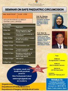 Pada akhir-akhir ini isu berkhatan telah memjadi isu semasa, atas kesedaran ini Jabatan Perubatan Keluarga telah bekerjasama dengan Jabatan Surgeri telah merancang satu Seminar tentang sunat. Seminar ini telah dijalankan pada Mac 2017, bertujuan untuk mendedahkan peserta dengan pelbagai teknik pembedahan berkhatan. Dalam masa yang sama dapat menyerlahkan implikasi klinikal dan medikolegel berkhatan. Seminar ini juga dapat menangani isu dan salah faham yang berkaitan dengan “sunat wanita”. Telah mendapat sambutan penyertaan yang sangat membanggakan dari dalam dan luar hospital. Kebanyakan peserta terdiri daripada Pegawai Perubatan, Pembantu Pegawai Perubatan dan Jururawat dari seluruh negeri.