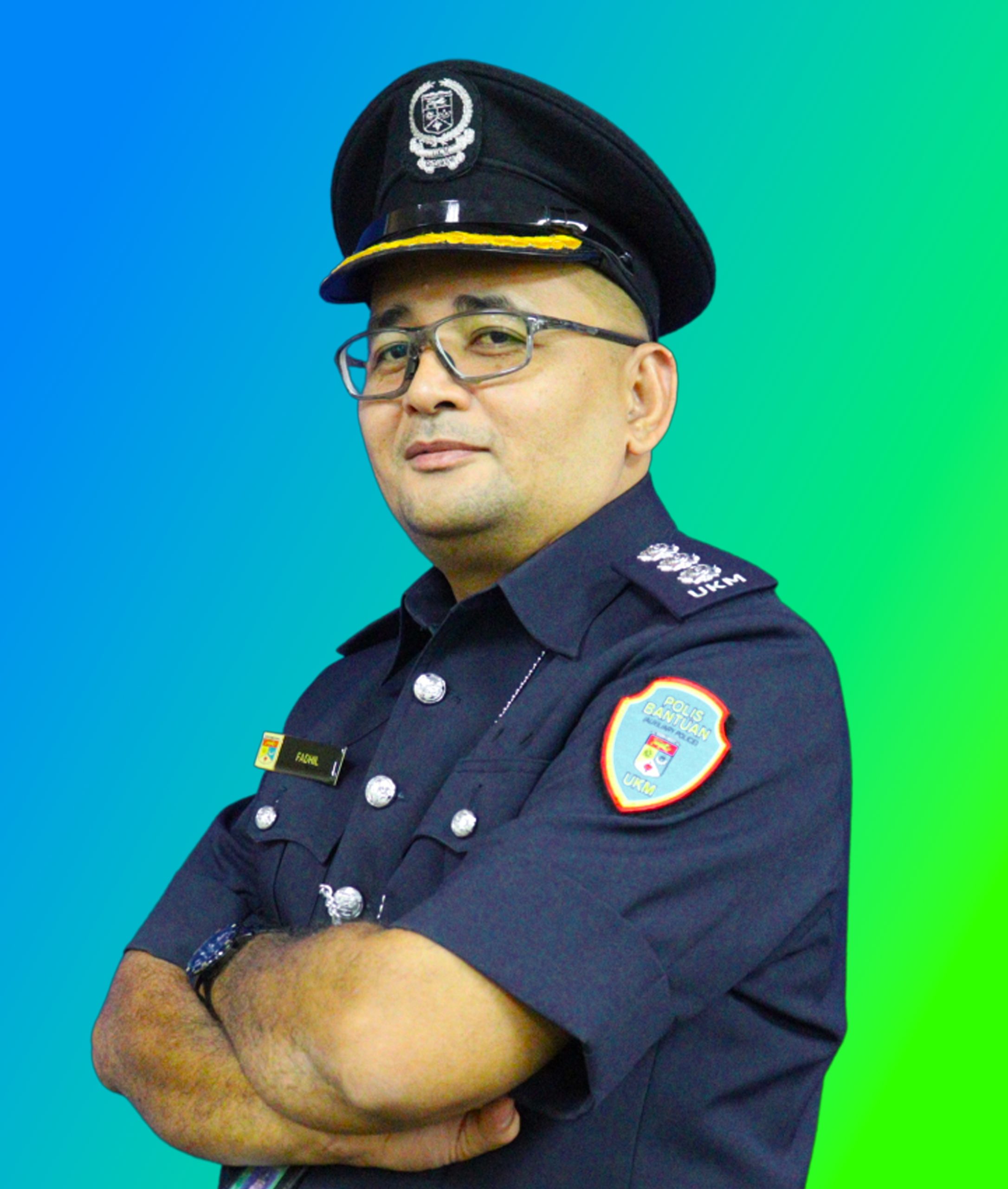 Direktori Bahagian Keselamatan UKM PENGURUSAN KAMPUS BANGI YH. MEJ. (B) DATO' ASRI AHMAD(D.I.M.P), (S.M.P), (K.A.T), (A.A.P), (A.M.P), (P.P.S), (P.P.A), (JUBLI SELANGOR), (JUBLI PERAK) PENGARAH BAHAGIAN KESELAMATAN KP12 (FX) 03-8921 5095 keselamatan@ukm.edu.my ASP/PB MUHAMMAD SYAKIR ISKANDAR MUZAKIRPEGAWAI KESELAMATAN KP9 Ketua Kampus Bangi 03-8921 3484 syakiriskandar@ukm.edu.my UNIT PENTADBIRAN ENCIK MOHD FADHIL MAZLINPENOLONG PEGAWAI KESELAMATAN KP6 (KUP) Ketua Unit Pentadbiran 03-8921 3486 fadil@ukm.edu.my PUAN SITI SYUHAILY MOHAMAD MUSTAFASETIAUSAHA PEJABAT N6 (KUP) Penyelaras Unit Pentabiran (S/U Pejabat Pengarah) 03 - 8921 5095 syuhaily@ukm.edu.my PUAN NOORSHARIZAWATI MD NOHPEMBANTU TADBIR (P/O) N2 Penyelia Unit Pentadbiran (Kewangan) 03 - 8921 5072 ieja@ukm.edu.my PUAN NUR HAFIZAH ABDUL HADIPEMBANTU TADBIR (P/O) N1 Penyelia Unit Pentadbiran (Cuti/Bayaran OT) 03 - 8921 5072 cmhafizah@ukm.edu.my KONST/PB NIK MUHAMMAD SUFIAN NIK MUZLANPEMBANTU KESELAMATAN KP1 Seragam/Aset/Aduan/Latihan/Pegawai Insiden 03 - 8921 5072 niksufian@ukm.edu.my UNIT KAWALAN DAN OPERASI INSP/PB ABDOL SAMAT ATANPENOLONG PEGAWAI KESELAMATAN KP5 Ketua Unit Operasi 03 - 8921 5082 samatan@ukm.edu.my ENCIK MOHAMAD NIZAM HASSANPEMBANTU KESELAMATAN KP2 Penyelaras Unit Operasi 03 - 8921 3832 mohanizsan@ukm.edu.my UNIT TRAFIK SI/PB MOHAMAD SOLEHUDDIN ANUARPENOLONG PEGAWAI KESELAMATAN KP5 Ketua Unit Trafik 03 - 8921 4517 anuarsolehuddin@ukm.edu.my ENCIK MOHD IQBAL S DALYPEMBANTU KESELAMATAN KP1 Penyelia Unit Trafik 03 - 8921 5092 mohdiqbal@ukm.edu.my UNIT POLIS BANTUAN ASP/PB MUHAMMAD SYAKIR ISKANDAR MUZAKIRPEGAWAI KESELAMATAN KP9 Ketua Unit Polis Bantuan 03-8921 3484 syakiriskandar@ukm.edu.my SI/PB MOHAMAD SOLEHUDDIN ANUARPENOLONG PEGAWAI KESELAMATAN KP5 Penyelaras Unit Polis Bantuan 03 - 8921 4517 anuarsolehuddin@ukm.edu.my PENGURUSAN KAMPUS KUALA LUMPUR (JALAN RAJA MUDA) KAPT. BERSEKUTU (PA) KHAIRULISHAM MATPEGAWAI KESELAMATAN KP10 (FX) Ketua Kampus Jalan Raja Muda 03 - 9289 7010 khairulisham@ukm.edu.my ENCIK NASARUDIN MUHAMMEDPENOLONG PEGAWAI KESELAMATAN KP5 03 - 9289 7985 nasarudin@ukm.edu.my SM/PB MOHD NURQAYYUM NAWIPEMBANTU KESELAMATAN KP2 03 - 9289 7236 mohdnurqayyum@ukm.edu.my SJN/PB ENCIK MOHD HAFIZUL ABD LATIBPEMBANTU KESELAMATAN KP1 03 - 9289 7171 hafizulatib@ukm.edu.my