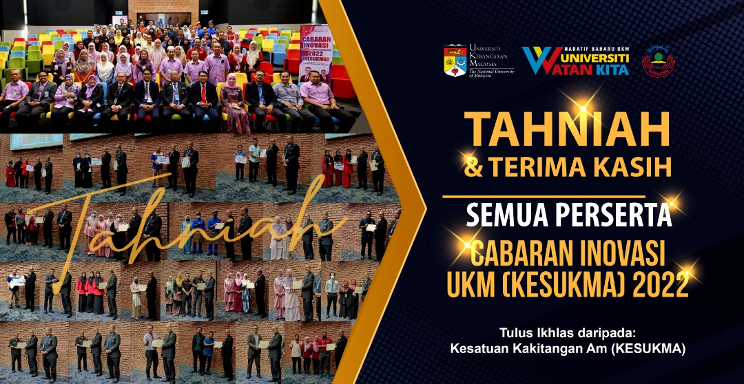 Kesatuan Kakitangan Am Universiti Kebangsaan Malaysia (KESUKMA) mengucapkan Tahniah kepada semua pemenang dan peserta Cabaran Inovasi UKM 2022.