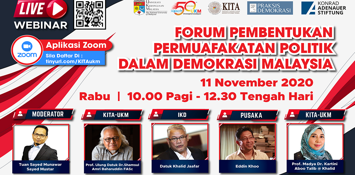 Sehubungan itu, pihak KITA-UKM ingin mengundang YBhg. Prof/Dato/Tuan/Puan menyertai forum ini secara atas talian. Semoga dengan penyertaan YBhg. Prof/Dato/Tuan/Puan forum ini akan berlangsung dengan jayanya. Penyertaan adalah terbuka dan bagi peserta UKM, penyertaan akan direkodkan di dalam eSpel.