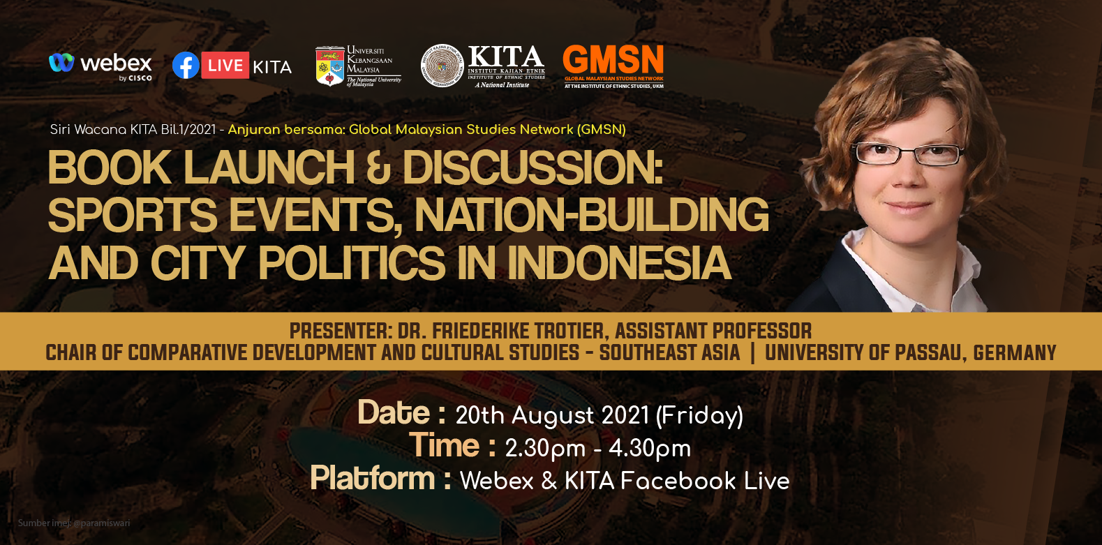 Dengan hormatnya dimaklumkan bahawa Institut Kajian Etnik (KITA-UKM) dengan kerjasama Global Malaysian Studies Network (GMSN) akan menganjurkan Siri Wacana KITA Bil.1/2021 oleh Dr. Friederike Trotier, daripada University of Passau, Germany seperti ketetapan berikut: