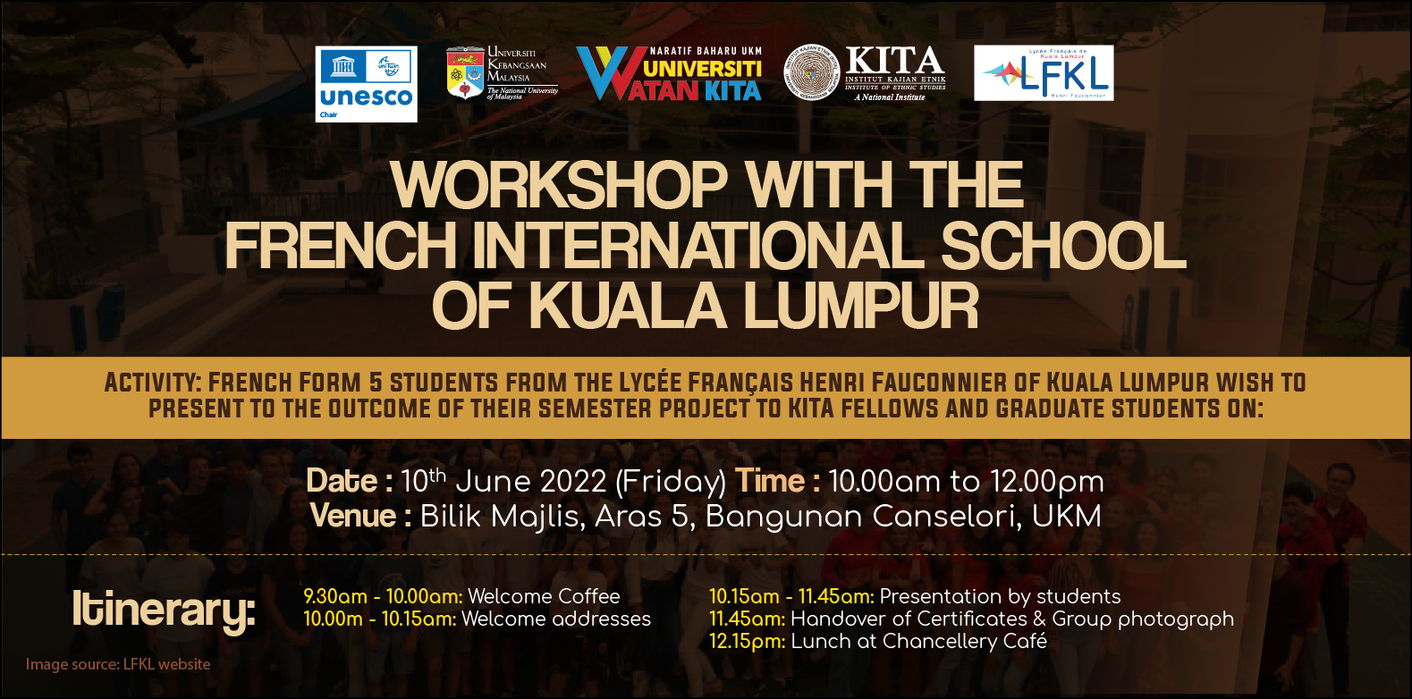 Online (Zoom)The Institute of Ethnic Studies (KITA) cordially invites you to the virtual launching of the Global Malaysian Studies Network at KITA (GMSN@KITA), to be held ...