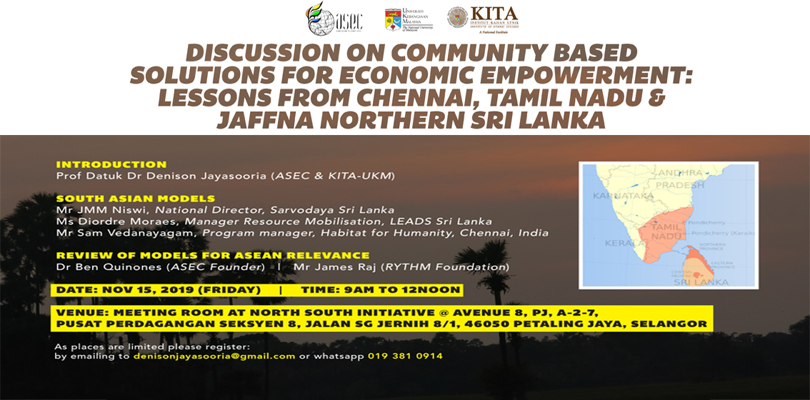 North-South Initiative A-2-7 Pusat Perdagangan Seksyen 8, Jalan Sungai Jernih 8/1, Petaling JayaInstitute of Ethnic Studies (KITA) and Asian Solidarity Economy Council (ASEC) cordially invite you to the "Discussion on Community Based Solutions for Economic Empowerment: Lessons ...