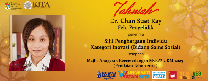 - Kategori Inovasi (Bidang Sains Sosial): Dr. Chan Suet Kay